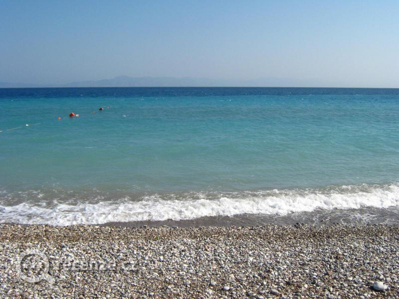 Pláž štěrková /vlastně všude na západním pobřeží Rodosu/ při vstupu do vody velké valouny, takže doporučuji boty do vody. Téměř prázdno na pláži! V sezóně na začátku července jsem do 10 hodin měli pláž jen pro sebe! Asi je to tím, že vyhlášená písková střediska se nacházejí na opačné straně ostrova. Možná pro někoho by byla odstrašující vzdálenost k moři - asi 1 km, ale čistota moře, prázdná pláž, klid a báječně houpající vlny tento nedostatek vynahradily.